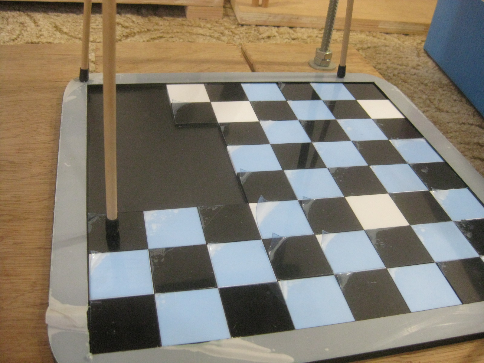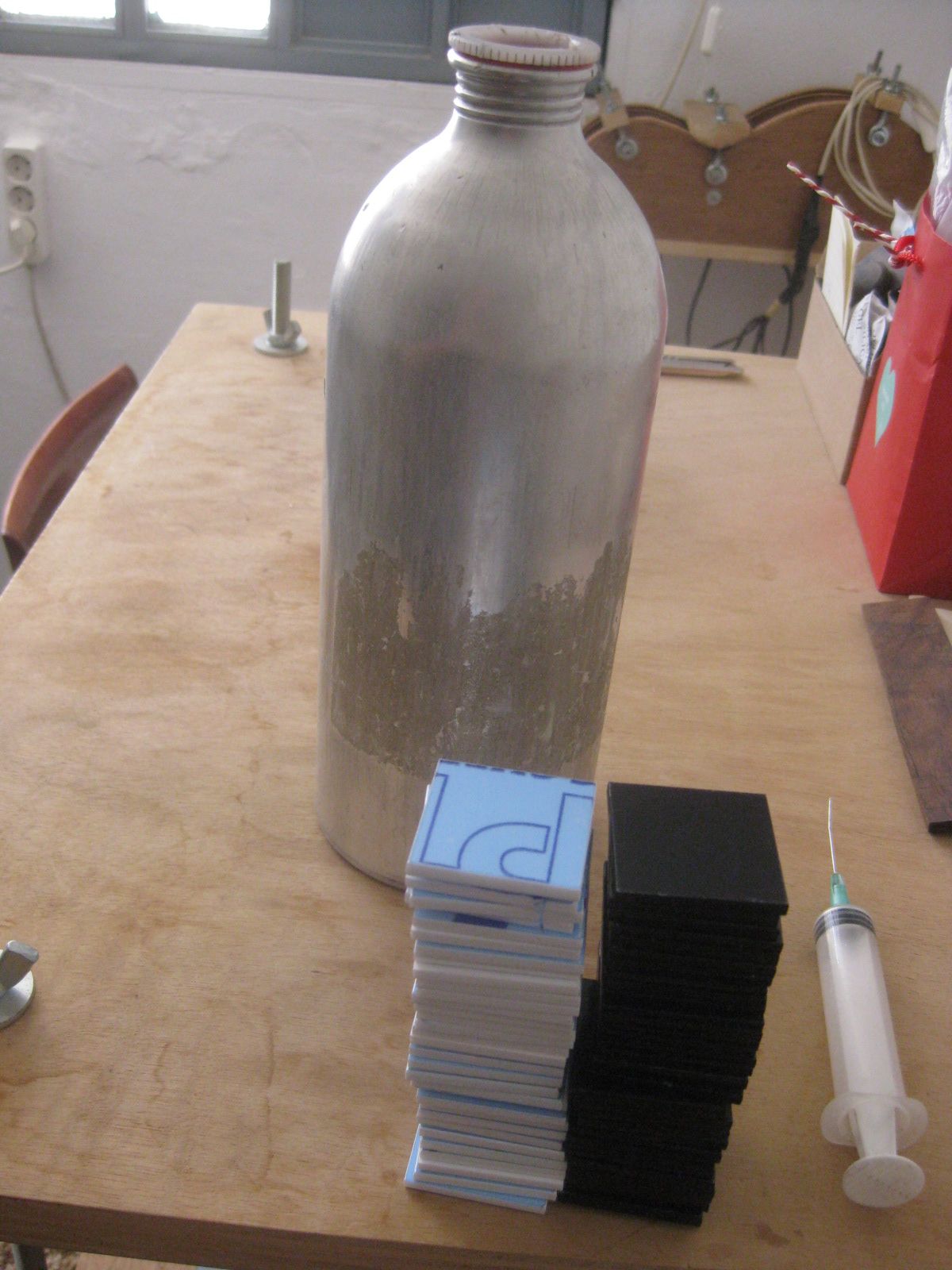 κοπηκανε στιο λειζερ κομματια ασπρο (πορσελανη) κ μαυρο (πλεξι) 3αρι