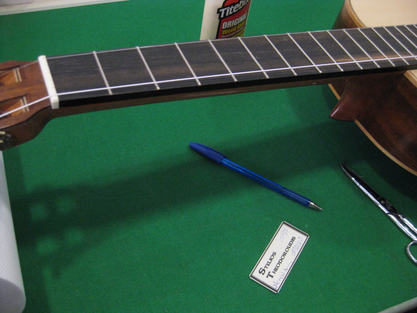 Εκ των υστέρων διαπίστωσα ότι τα είχα βάλει πολύ κοντά το ένα στο άλλο και οι χορδές δυσκολεύονται να μπουν ή να βγούν. Μια εύκολη λύση είναι να τα βιδώσω σε διαφορετικά βάθη ώστε τα μισά κεφάλια να εξέχουν. Άλλη λύση είναι να λιμάρω τα κεφαλάκια των βιδών δεξιά-αριστερά. Η. πιο δραστική είναι να βγάλω τα τρία (ένα παρά ένα) και να τα βάλω λίγο χαμηλότερα (θα πρέπει βέβαια να κλείσω τις τρύπες χωρίς να φαίνεται  ::) ). Θα το σπουδαιολογήσω ... και θα αποφασίσω.   :banghead:
