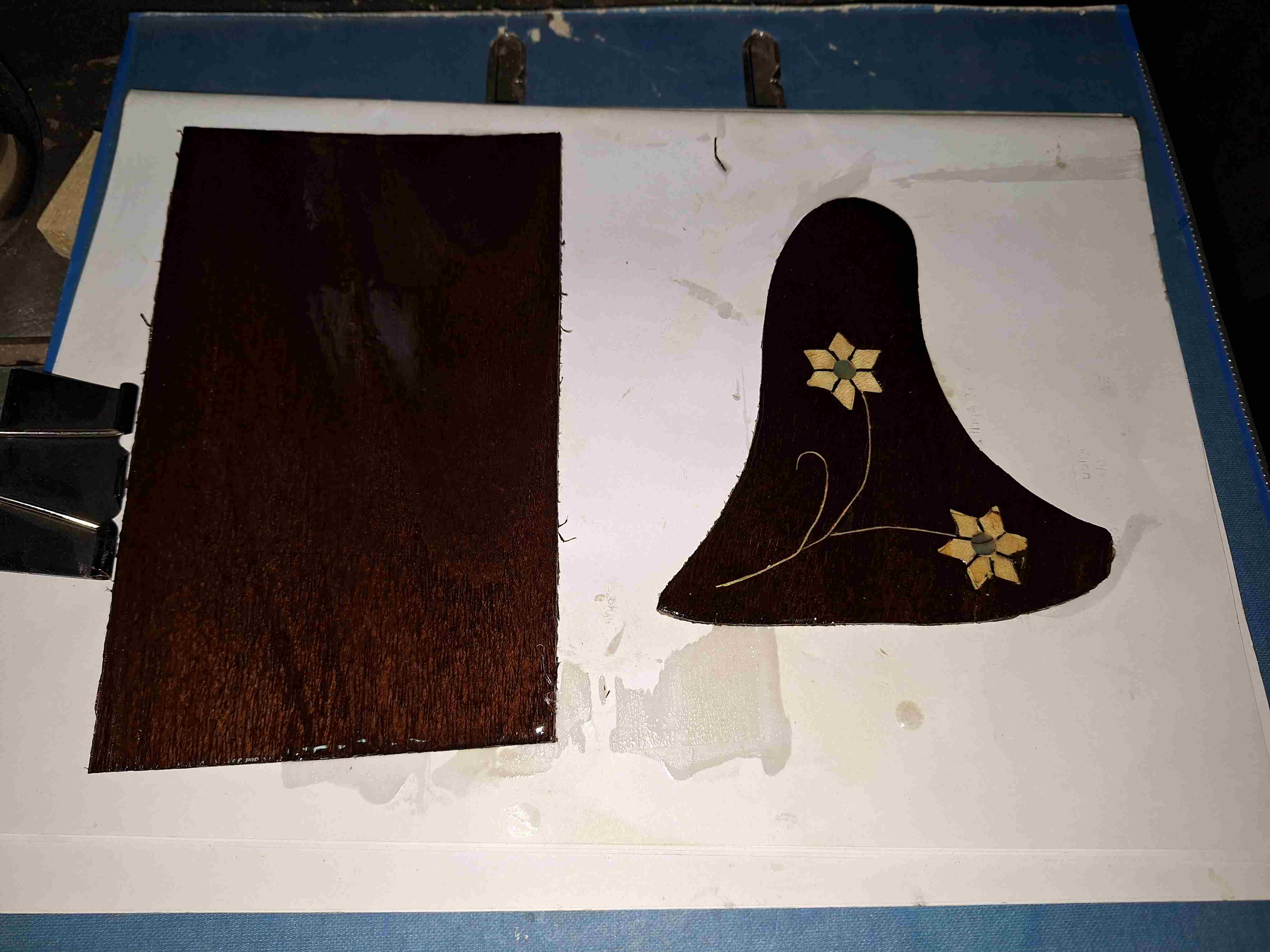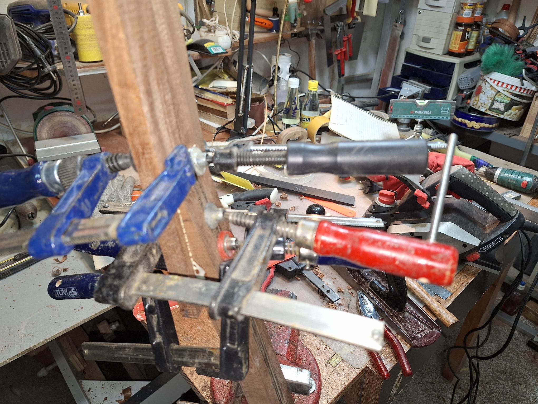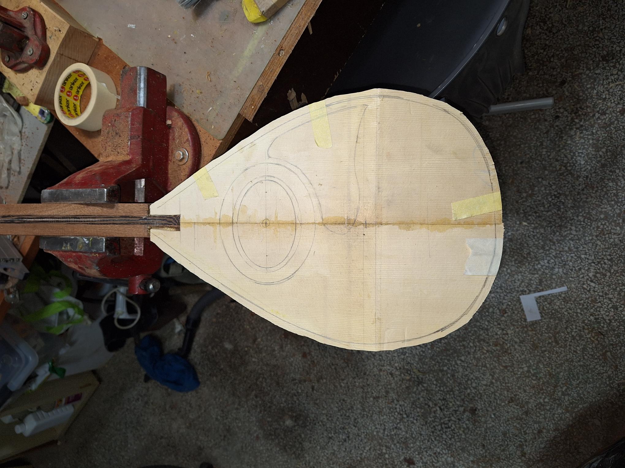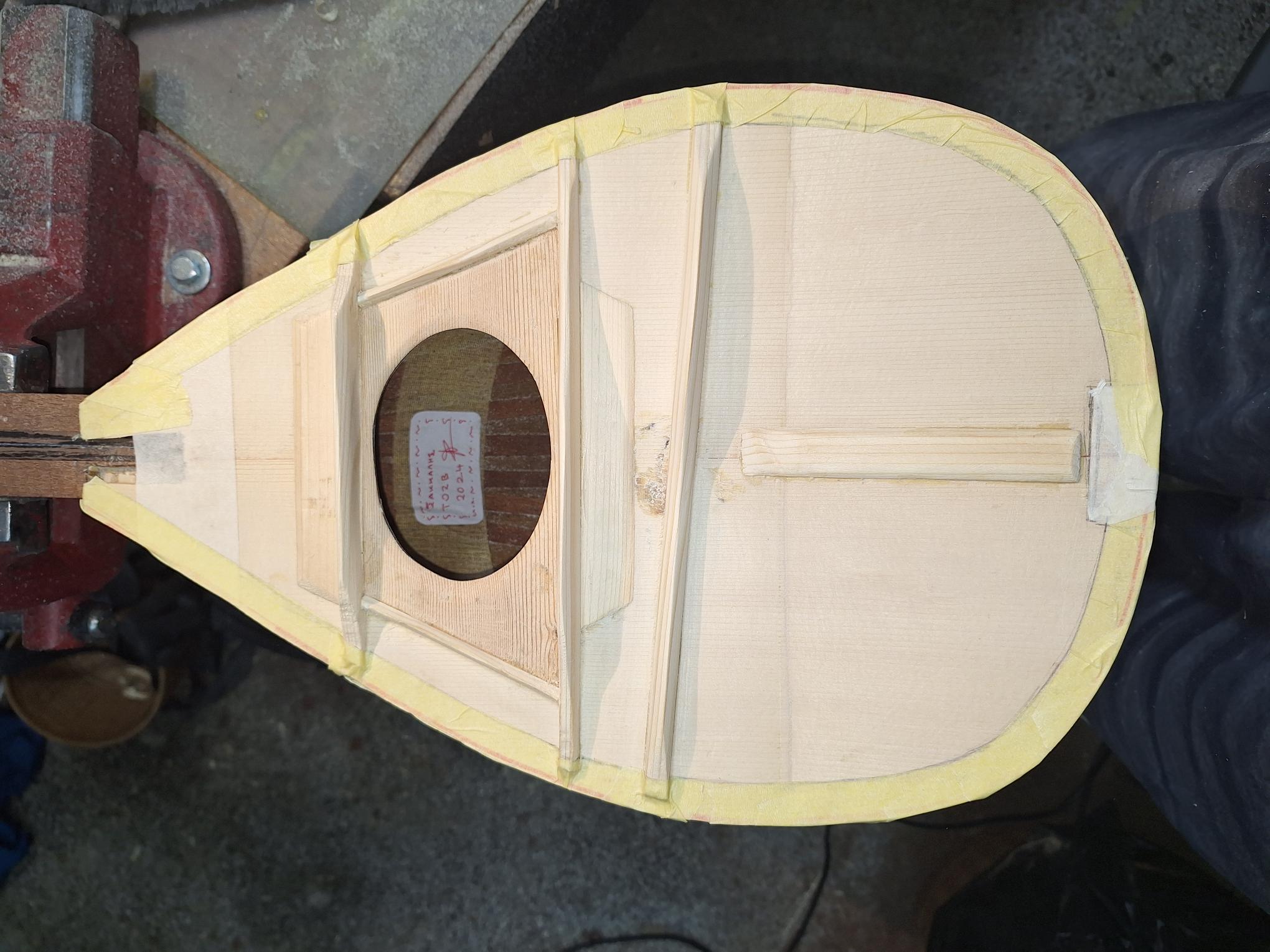 Όλο το όργανο περάστηκε με γυαλόχαρτα 60-100-120-180-240-320-400. Μ/εχρι και το 120 με το παλμικό τριβείο εκτός του σκάφους καθότι οι ντούγες είναι σκαφτές. Όλη η δουλειά με το χέρι. Πονέσαν τα δάχτυλα μου. Τα σκάφη με ανάγλυφες σκαφτές ντούγες είναι πολύ όμορφα αλλά η δουλειά έχει πολύ παίδεμα. Νομίζεις ότι τελειώνεις με το ένα γυαλόχαρτο αλλά άμα το δεις προσεκτικά θέλει ξαναπέρασμα και ξανά και ξανά...