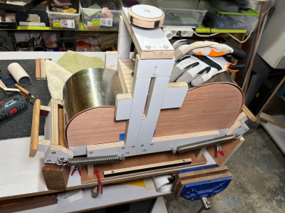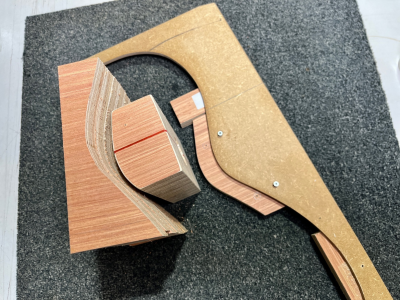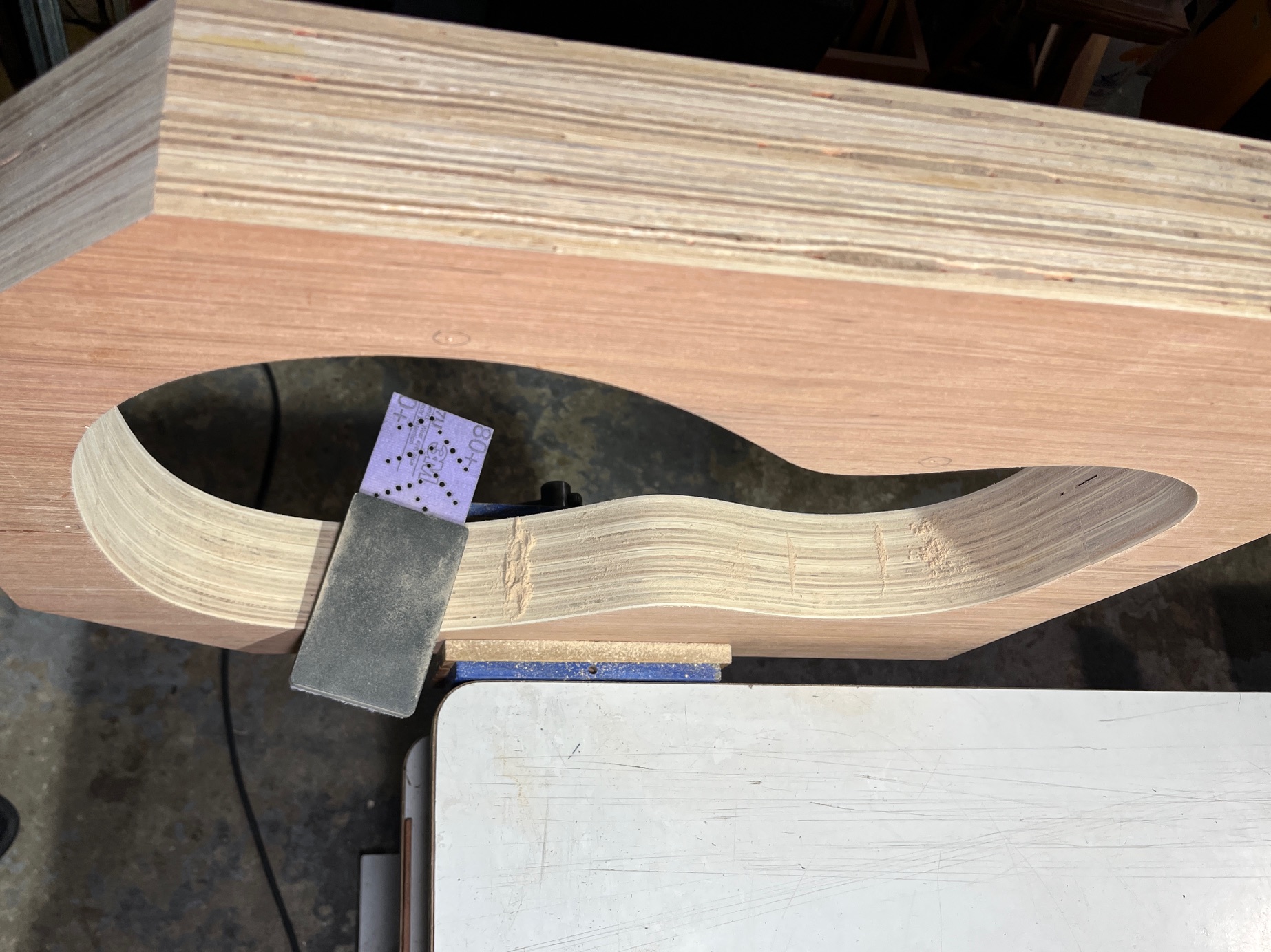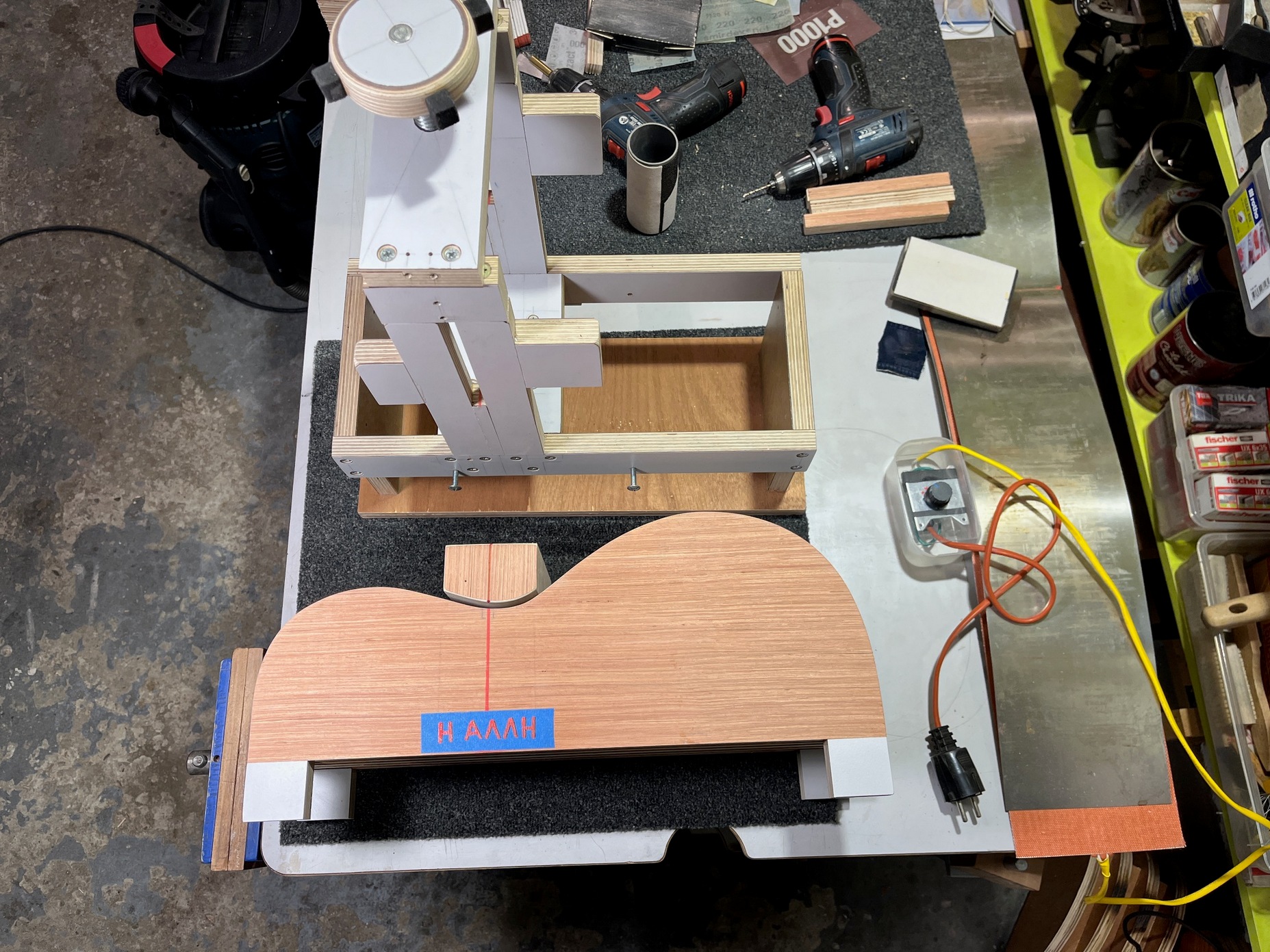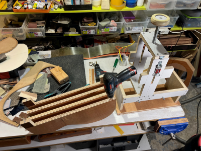 Η κλίση του μάνικου διαμορφώνεται στο drum-sander που είναι ιδιοκατασκευή του εργαστηρίου όπως ίσως κάποιοι θυμούνται (με έμφαση στην οικονομία όγκου και βάρους) http://www.luthier.gr/index.php?topic=3664.msg64250#msg64250.
