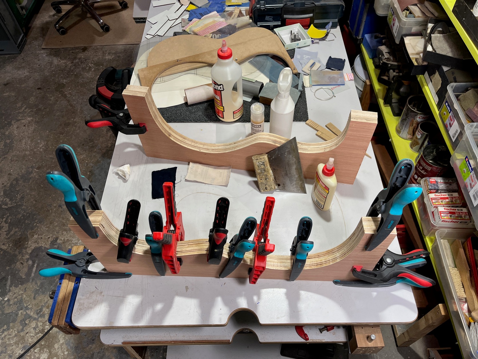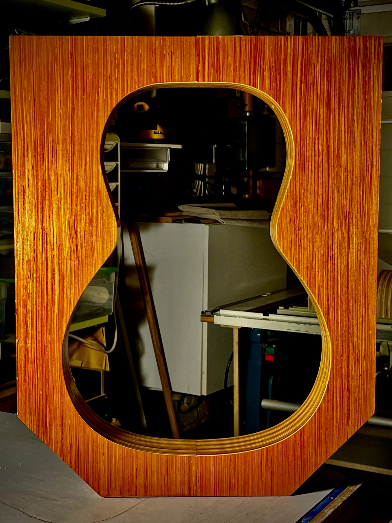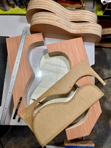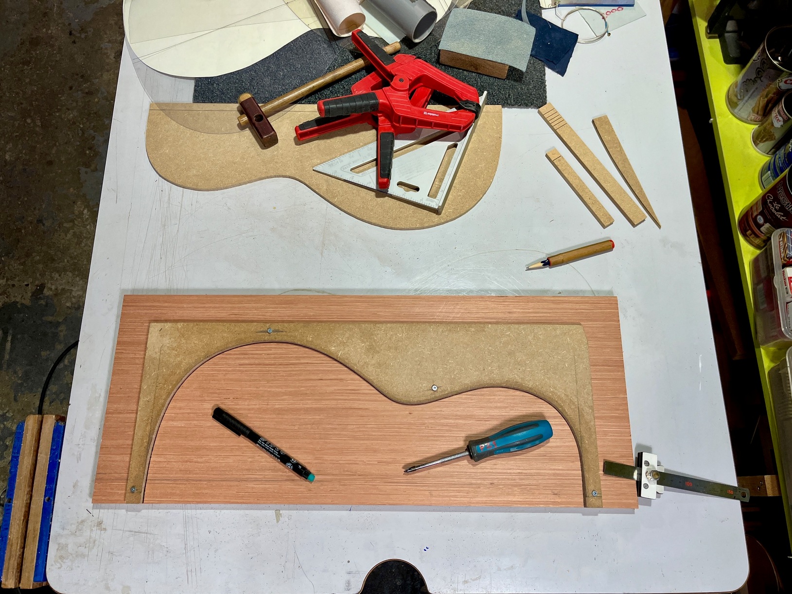 Κάτι καμπύλες που τις ψυχανεμίστηκα για κομψές, μια κοιλιά λίγο πιο στρογγυλή από την Double O (που είναι το μοντέλο της κιθάρας που φτιάχνω μέχρι τώρα), μια μέση με κορσέ λίγο πιο ανακουφισμένο και κάτι μαντεψιές εδώ κι εκεί.