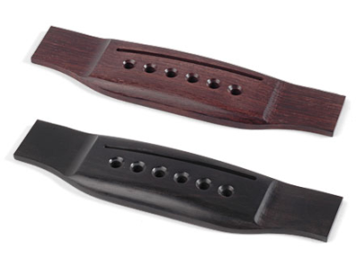 Στην δεύτερη κιθάρα που είχα αποφασίσει να την κάνω "μουστάκι" έφτιαξα δύο επιπλέον κομματάκια που περιλαμβάνουν ένα μικρό κοτσάνι και ένα στρογγυλό κομμάτι στο οποίο έβαλα από μια "τελεία" από abalon. Το πρόβλημα ηταν η ένωση αυτών των δύο μικρών κομματιών με το σώμα της γέφυρας, δεδομένου ότι το κόλλημα έπρεπε να γίνει μετά το λουστράρισμα. Πρέπει να πω ότι δεν μου ήταν απλό να φτάσω σε αυτό το αποτέλεσμα (πρώτη φορά έκανα κάτι τέτοιο) και έκανα διάφορα λάθη. Τελικά χρησιμοποίησα και τις τρείς τεχνικές που σκέφτηκα δηλαδή ειδικό έγχρωμο κερί επιπλοποιίας για στοκάρισμα, σκόνη έβενου με κυανοακριλική κόλλα, καθώς και στόκο νερού. Αλλά ... τέλος καλό όλα καλά.