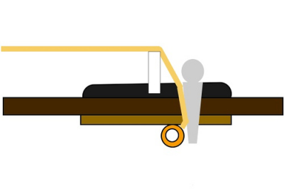 Πρέπει επίσης να σημειώσουμε ότι στις περισσότερες ακουστικές κιθάρες (όπως και στις συγκεκριμένες δικές μου) οι χορδές δεν καταλήγουν στο πίσω μέρος του καβαλάρη π.χ μέσα από κάποια οριζόντια τρύπα. Αλλά περνούν μέσα από κάθετες τύπες, κάτω από το καπάκι. Για να κρατηθούν στη θέση τους βάζουμε τα μικρά πλαστικά η ξύλινα πυράκια (εξωτερικά φαίνονται ως διακοσμητικά) μέσα στις τρύπες ώστε να σφηνώνεται μεταξύ του άκρου τους (που μπαίνει μέσα στην τρύπα) και του καπακιού, η μπίλια που υπάρχει στην άκρη της κάθε χορδής της κιθάρας (αντί για θηλειά που έχουν τα μπουζούκια). Έτσι ένα μεγάλο μέρος της τάσης εφαρμόζεται από κάτω προς τα πάνω και κατανέμεται στην ευρύτερη περιοχή του καβαλάρη. Για να προστατέψουμε το μαλακό καπάκι από την πίεση αυτής της μπίλιας, ενισχύουμε το καπάκι κάτω από τον καβαλάρη με ένα κομάτι σκληρό ξύλο, συνήθως ένα ρετάλι από το ξύλο της πλάτης ή των πλαϊνών.