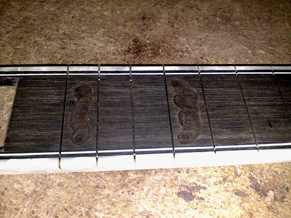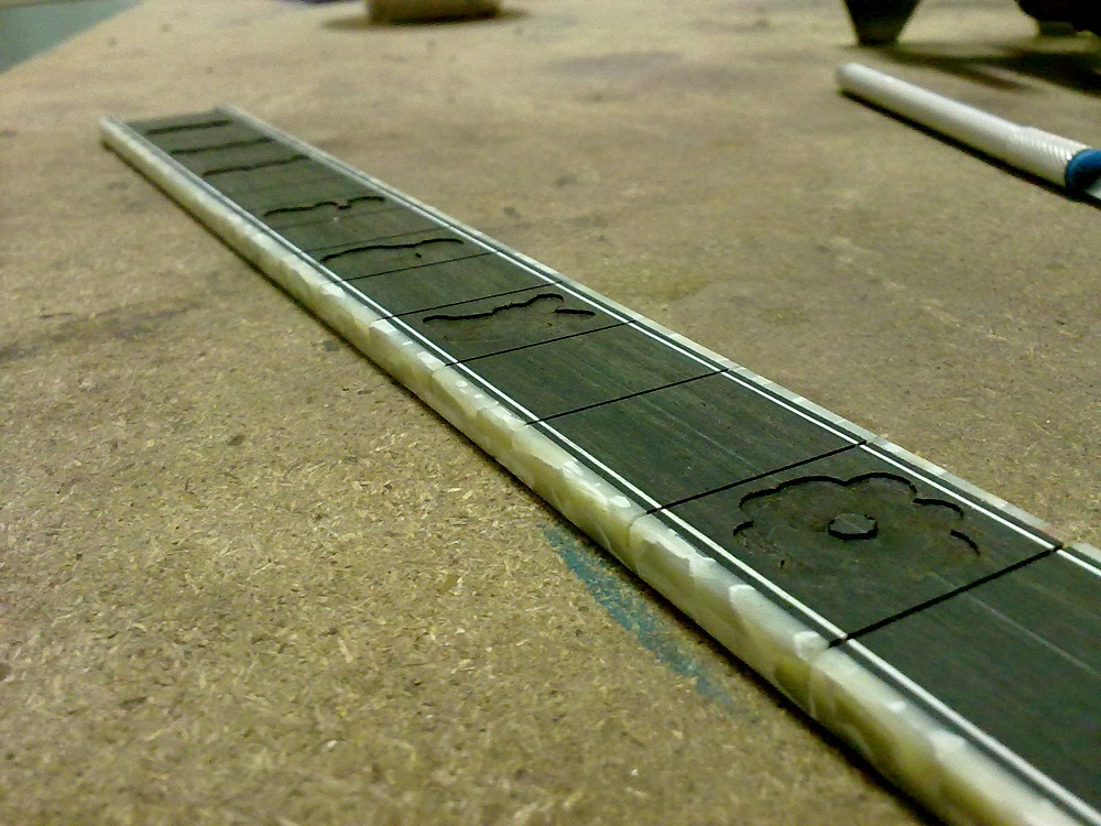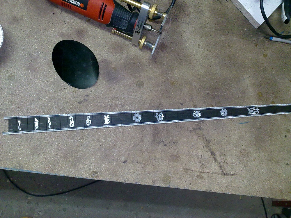 Και μια ερώτηση. Βλέπω ότι χαράζεις την ταστιέρα αφού την έχεις ήδη διαμορφώσει στην τελική της μορφή. Αυτό προφανώς το κάνεις γιατί στο επιτρέπει η πατέντα που έχεις κάνει για την χάραξη. Μήπως μπορείς να μας κάνεις μια ανάλυση της πατέντας ? Βοηθάει πολύ να γίνεται η χάραξη σε διαμορφωμένη ταστιέρα και με κολλημένα τα celluloid.