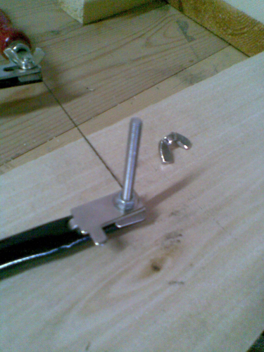 εδω τωρα θελει ψυχραιμια ( ποση ?) και αναμα τσιγαρο.Εβαλα λοιπον την πεταλουδα αντι για παξιμαδακι και ταιριαξε.Μαλον το 8αρακι το πηρα να κανω εξαερωση στη μηχανη την περασμενη βδομαδα.Αφου τελος καλο και μετα απο πολλα μπινελικια εκοψα ιροκο και εφτιαξα αυτη τη αυτοσχεδια χορδιερα.Την οποια και πατησα καλα στο σκαφος, και στερεωσα με κολα και δυο καβιλιες( οδοντογλυφιδες)