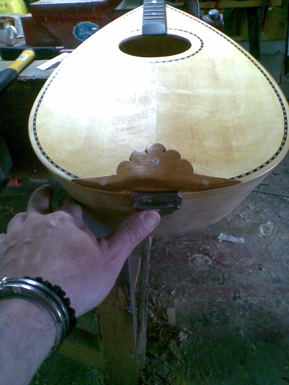 η χορδιερα ειναι κουφια απο κατω ωστε να περνουν οι χορδες.Χρειαζομαστε ομως και την μιση χορδιερα για να πιανουν απο καπου.Και μετα κοιτωντας τα καταπληκτικα οργανα του παραπανω κυριου μου ρθε........................Και τρωω ενα γαμ........ κυριοι ματι πραμα ηταν αυτο? Τα γλαρακια λοιπον ειναι απο φλαμουρι και θα μπουνε αντι της φιγουρας.Αυτα για την ωρα..........