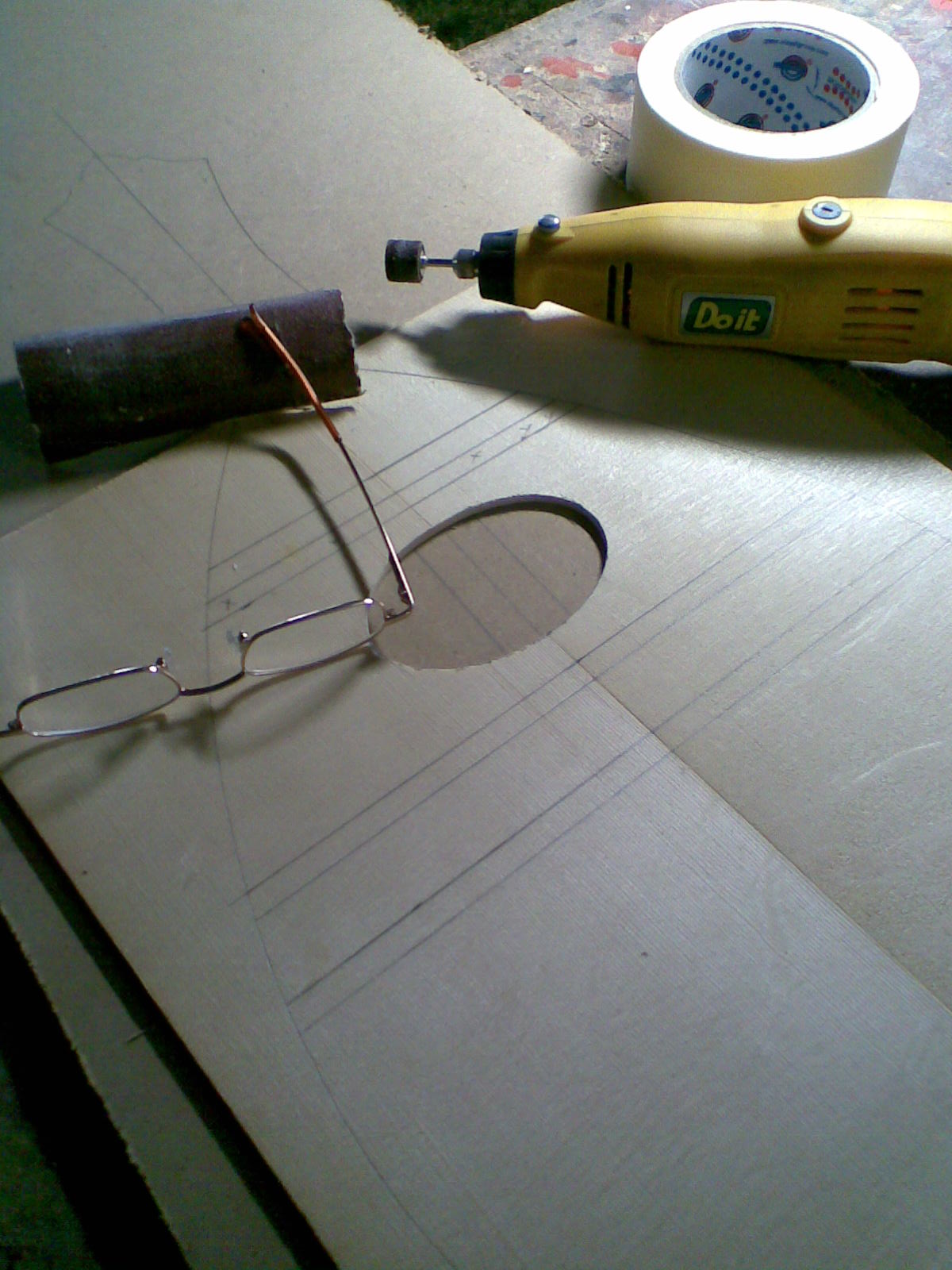 ανοιγουμε τρυπα με την σεγα χειροτεχνιας, κι αφηνουμε και λιγο ψαχνο να φαει το εργαλειο της φωτο, οστε να γινει η