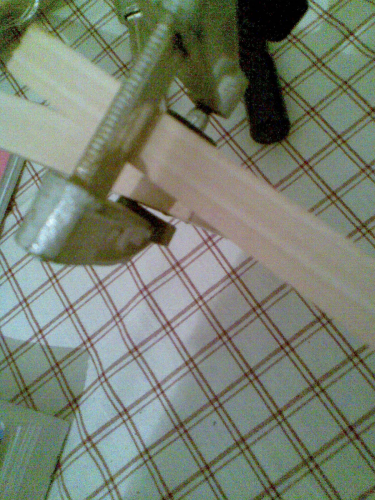 εδω κοψαμε το μπρατσο οπου και θα γινει ενα σωμα με το καραολο.Το κοματι που εφυγε δεν το πεταμε, θα μας χρειαστει να το βαλουμε απο κατω ωστε να σφιξουμε χωρις προβλημα.Εγω το πιανω απο κατω με ταινια διπλης οψης.Ετσι οπως  δειχνει η δευτερη φωτο
