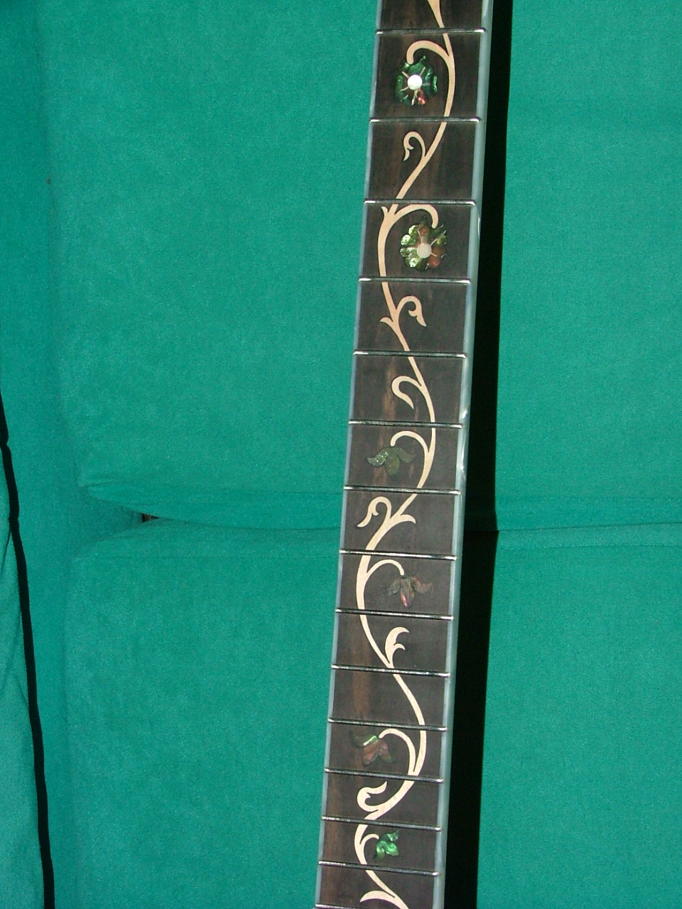 Ταστιέρα έβενος με κλάρα. Την κατασκευή της την έχετε ήδη δει. Η κλάρα είναι από κελεμπέκι και τα λουλουδάκια επίσης από celluloid.