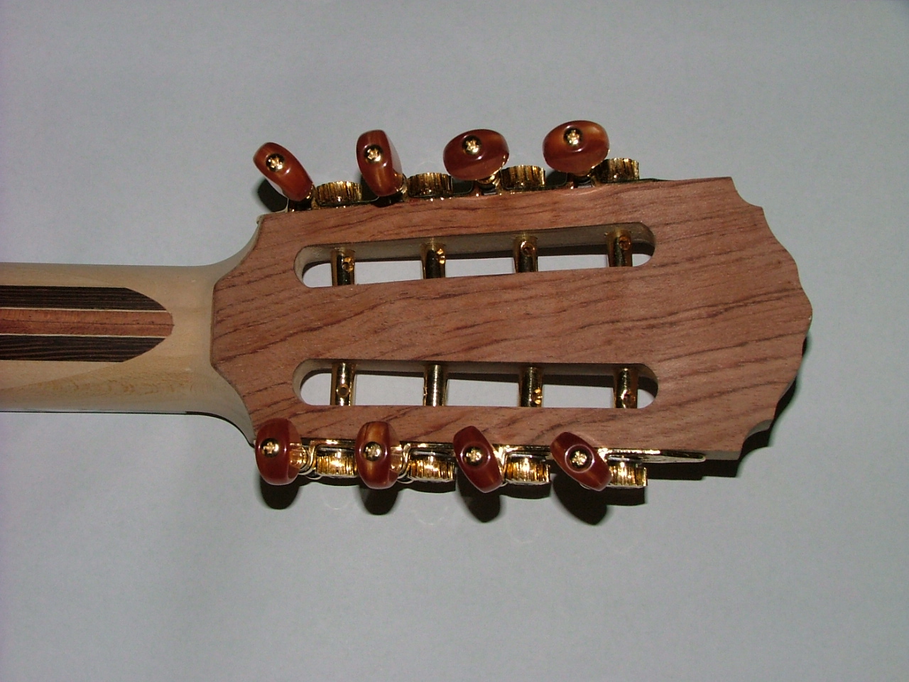 Το μάνικο έχει τρεις κόντρες. Η κεντρική είναι bubinga με δύο κόντρες βέγγε εκατέρωθεν. Για αισθητικούς λόγους ενδιάμεσα στις κόντρες έβαλα καπλαμά κελεμπέκι. Συμπληρώνεται από φλαμούρι εκατέρωθεν.