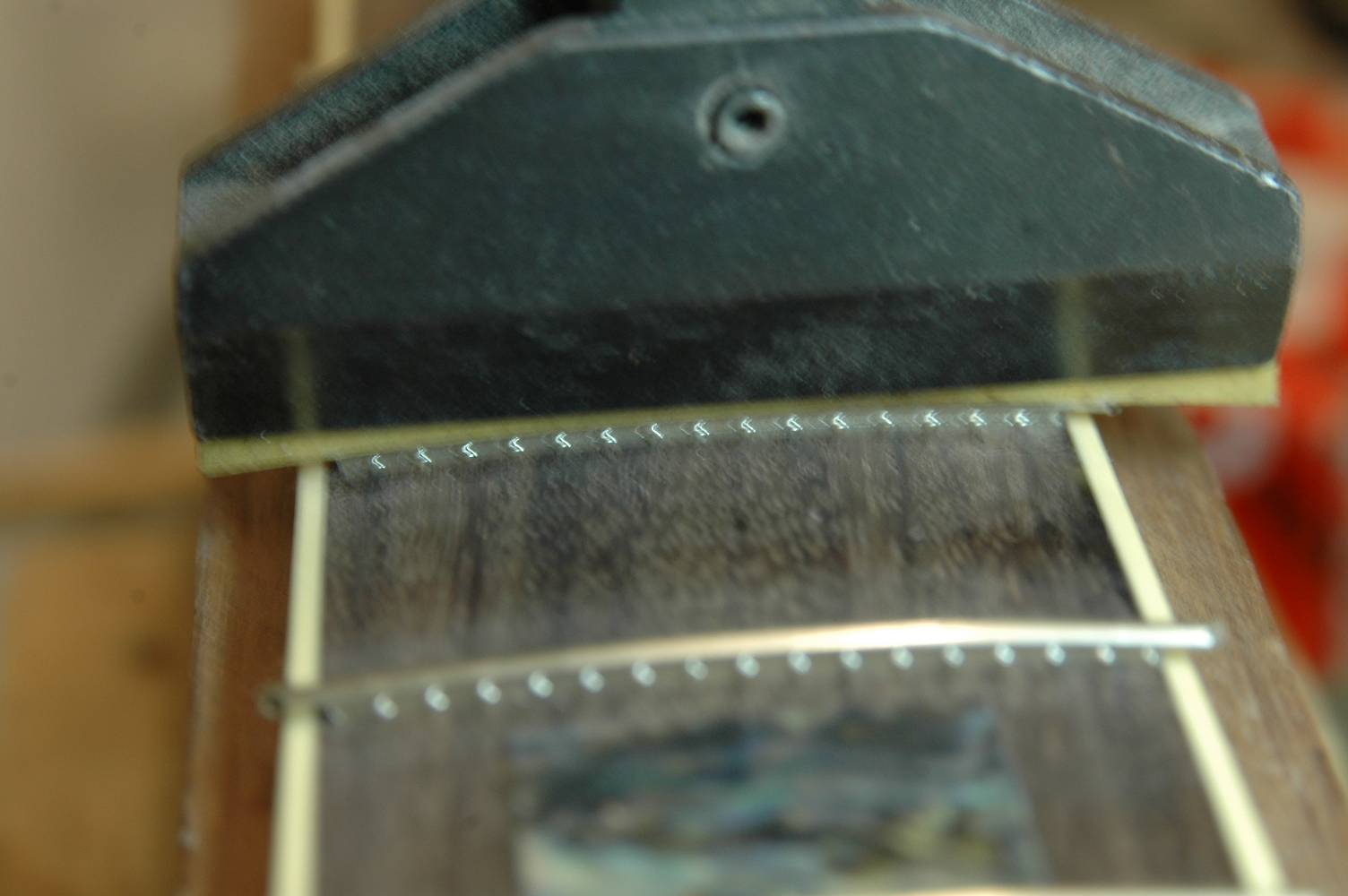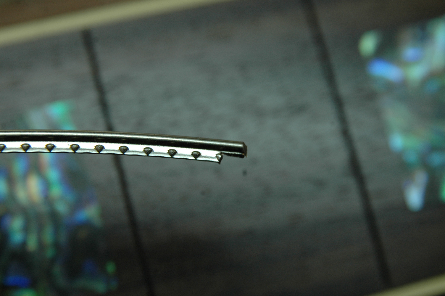 Πάντως εγώ στις κιθάρες μου έβαλα παχύ φιλέτο στην περίμετρο της ταστιέρας και έτσι αναγκαστικά το δόντι ήταν αρκετά βαθύ. Παρατήρησα ότι κάποια τάστα παρόλο το κτύπημα δεν κάθονται καλά στις άκρες. Έτσι στη δεύτερη κιθάρα έκοψα και το φιλέτο και τα έβαλα κανονικά. Γιαυτό θέλει προσοχή μέχρι ποιο πάχος φιλέτου μπορείς να το κάνεις (π.χ. 1 - 1,5 mm).