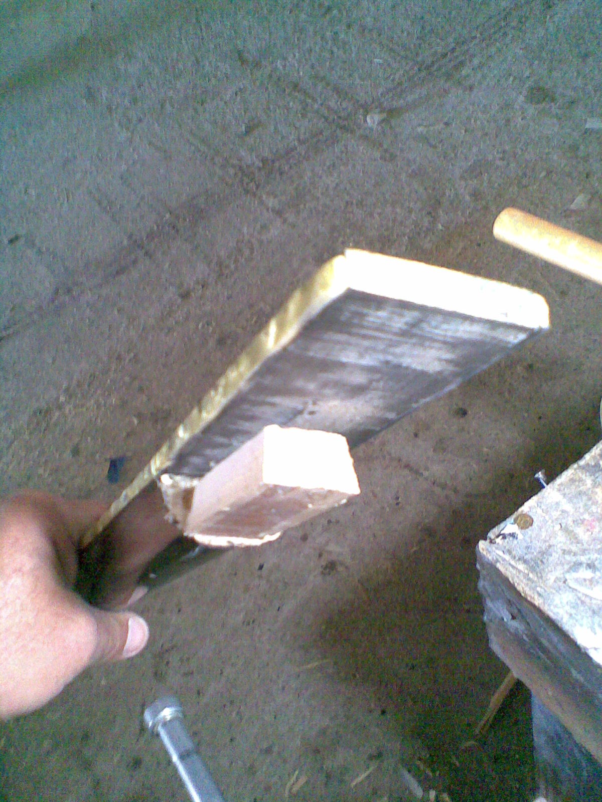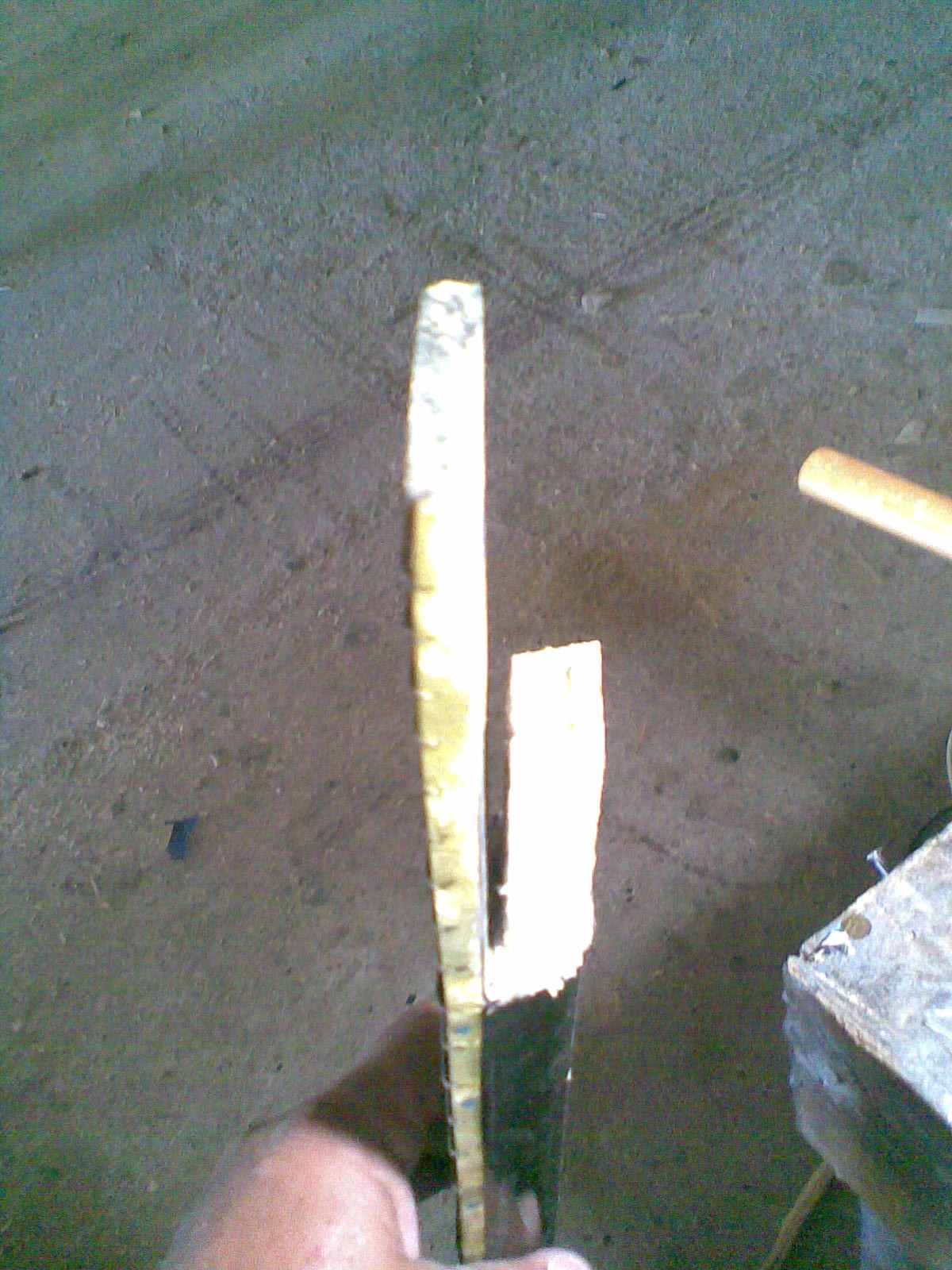 το μανικο τωρα ειναι τρια ξυλα κολημενα μαζι.Τα δυο ακριανα ειναι φλαμουρι και το κεντρικο ειναι μαλλον δρυς.Στην ενωση ειχε διαφορα σφηνακια, καπλαμαδακια, παπαρακια για να ταιριαξει
