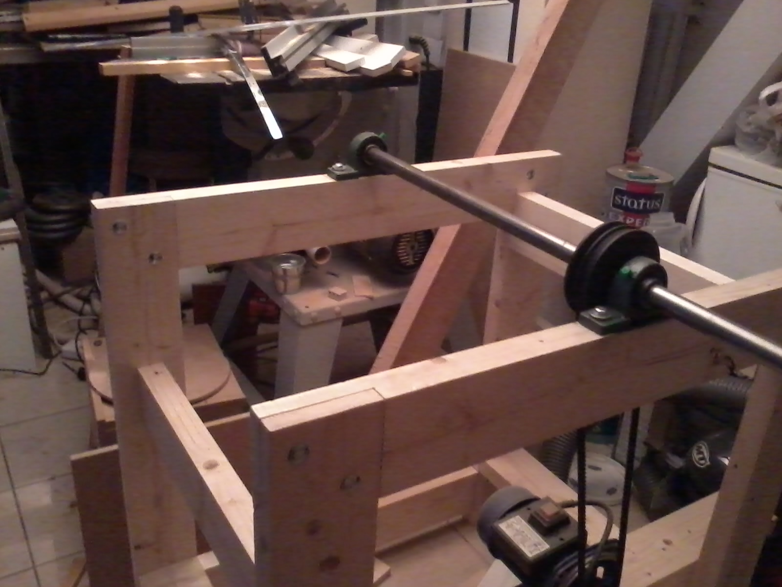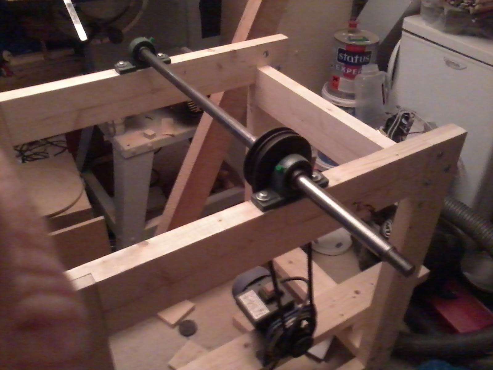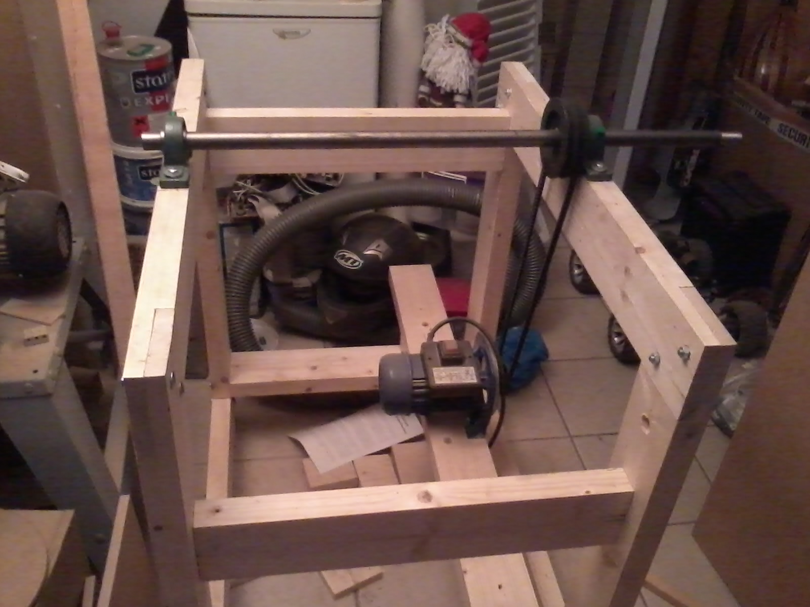 Καταφερα κ εγω να ανεβασω φωτο απο το μισοτελειωμενο drum sander μου.Εχω τοποθετησει μοτερ 1,5 hp στις 2800 rpm και με ενα συνδιασμο τροχαλιων ριχνω τις στροφες στις μισες (1400 rpm).Ο αξονας ειναι βαρεως τυπου φ25mm.Δυνατοτητα ξεχονδρισματος ξυλου πλατους 50cm.Το τυμπανο θα το κατασκευασω απο δισκους mdf και απανω στο τυμπανο θα κολλησω το αρσενικο του χριτς χρατς.Και επισης μου μενει ακομα το κρεβατι το οποιο πρεπει να ειναι μια πολυ αλφαδιασμενη επιφανεια και δυσκολευομαι να βρω κατι ετοιμο.Εχω σκεφτει παγκο κουζινας αλλα εχει 30 ευρω το μετρο,κ εγω θελω 90cm.Οποιαδηποτε βοηθεια δεκτη.Και φυσικα ακουω αναφορες και σχολια...
