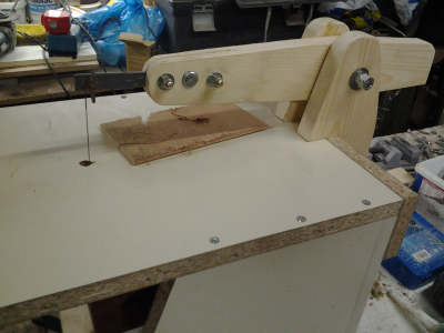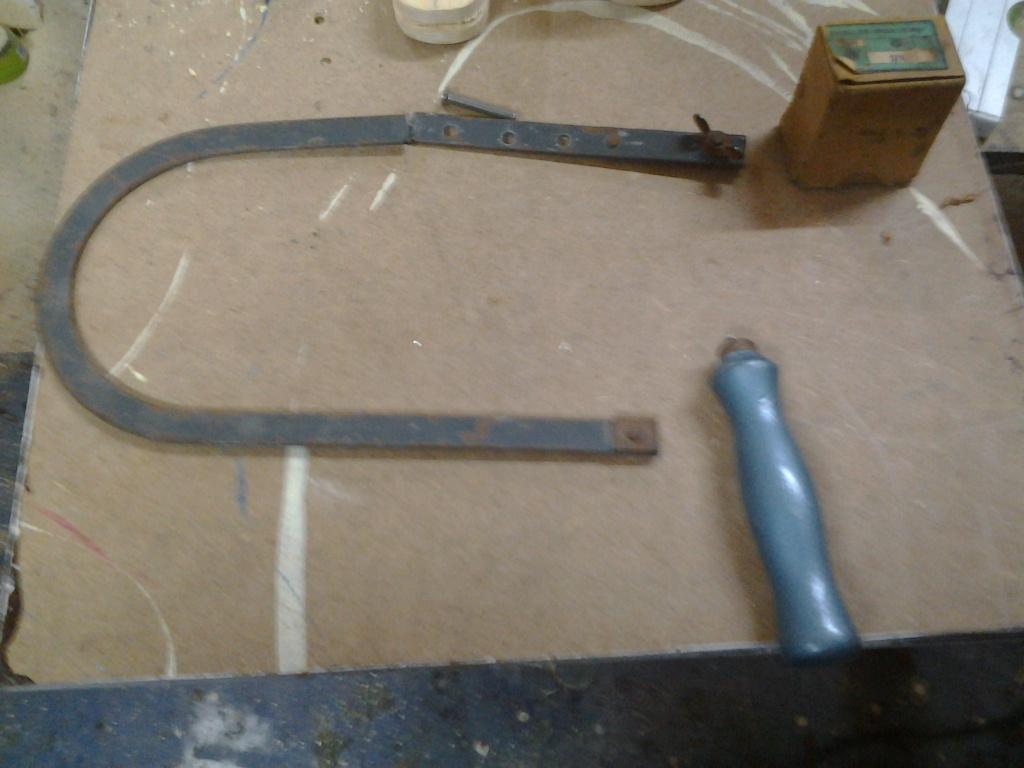 εχοντας λοιπον μια σεγα χεριου απο αυτες που ειχαμε στο δημοτικο πηρα τις ακρες και τις προσαρμοσα στην σεγα και στο μπρατσο κατοπιν βιδωσα την σεγα απο κατω και εφτιαξα το μπρατσο στο πανω μερος ,στην πισω πλευρα εβαλα ενα ελατηριο σε μια σκαλιερα για να μπορω να κανω το τεντωμα στο πριονακι τωρα βεβαια το πριονακι ειναι απο το πριονι του χεριου οχι απο σεγα παγκου αλλα το αποτελεσμα ειναι το ιδιο αν εχετε λοιπον καμια σεγα στην ακρη ξεσκονιστετην και καλη αρχη .