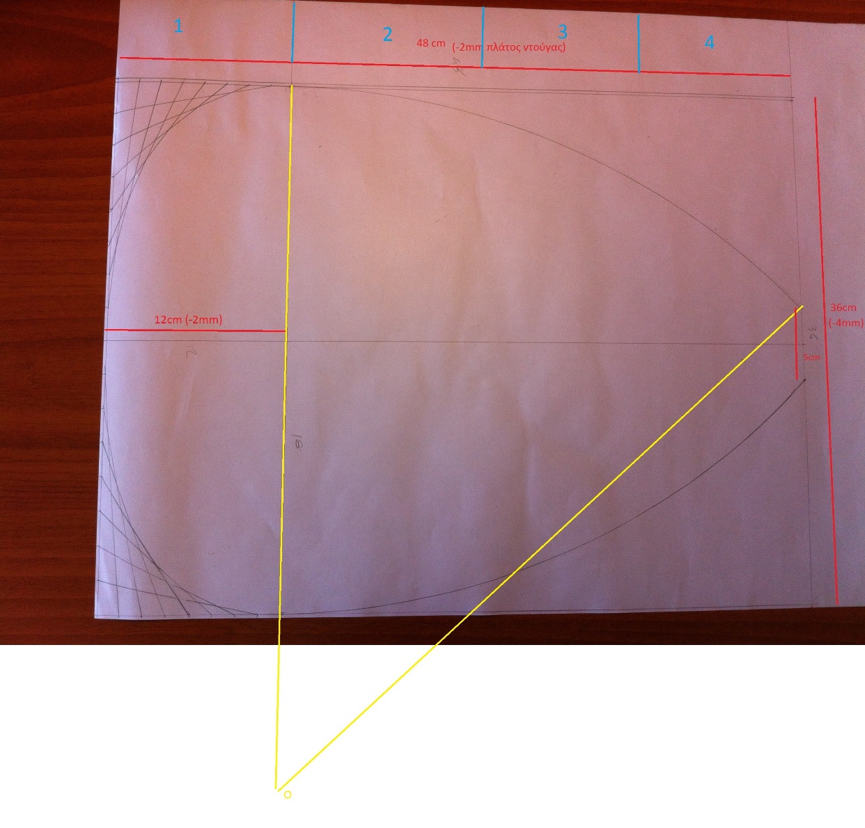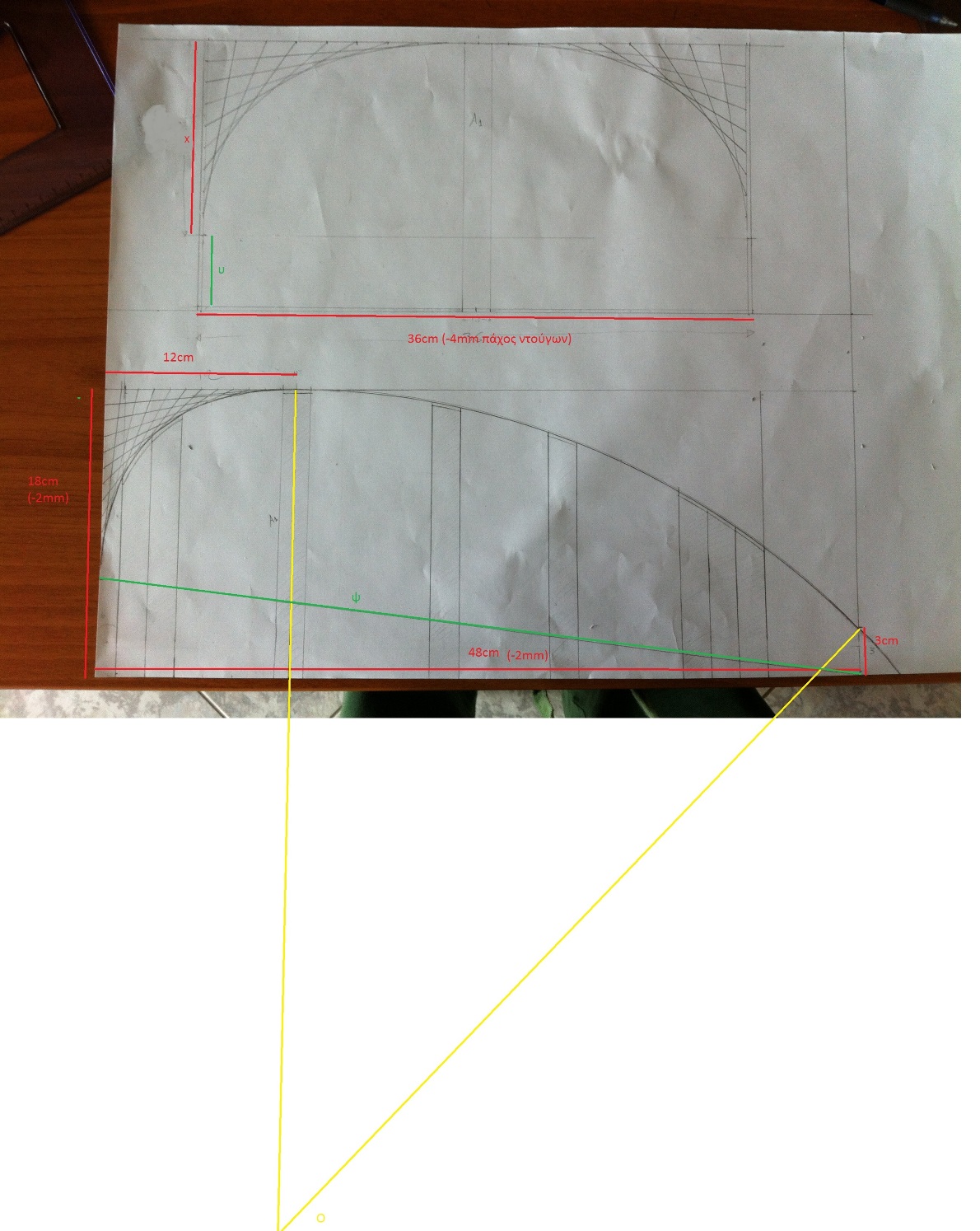 Με κίτρινο είναι οι ακτίνες κύκλου που μας δίνει την καμπύλη απο το μεγιστο πλάτος ώς το σημείο της ένωσης με το μπράτσο.