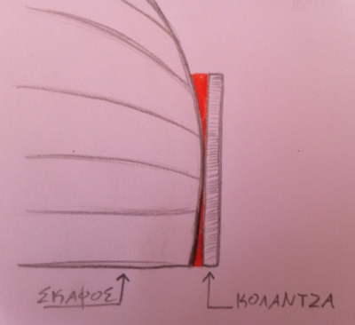 Η επιφάνια από κάτω δεν είναι ακριβός ίσια, στο κάθετο της, με αποτέλεσμα να "τραμπαλίζει" η κολάντζα. Εχω ψιλοπελαγώσει και δεν ξέρω πως να συνεχίσω.  Νομίζω πως σηκώνει λίγο ακόμη ξύσιμο εκεί αλλά το φοβάμε. Μία σκέψη είναι να ξεκαλουπώσω το σκάφος και μετά να κολλήσω χρησιμοποιώντας σφικτήρες για πίεση και από τις 2 μεριές. (μέσα-έξω). ....Καμιά ιδέα κανείς;