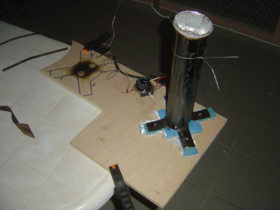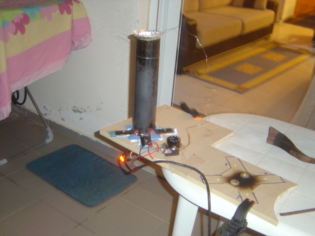 Ενα γκαζακι του καφε και ενας σωληνας σομπας ο οποιος στηριζεται απλα στον τοιχο ;D(ειναι πολυ σταθερο!!!)
