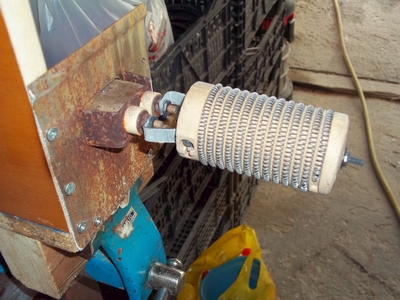 τρυπάμαι το ξύλο γιά νά τοποθετήσουμε τόν θερμοστάτη μέσα στό ξύλο βιδώνουμε τήν αντίσταση πάνω στό ξύλο