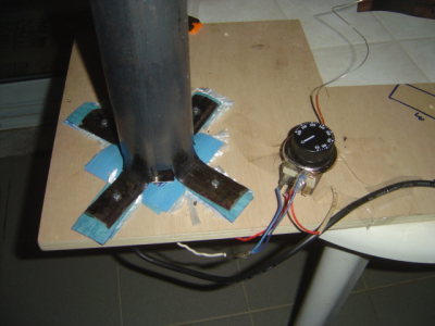 καί εσωτερικά από τρύπα συνδέουμε τήν αντίσταση μέ τό θερμοστάτη,συνδέουμε καί τήν λυχνία,από τόν