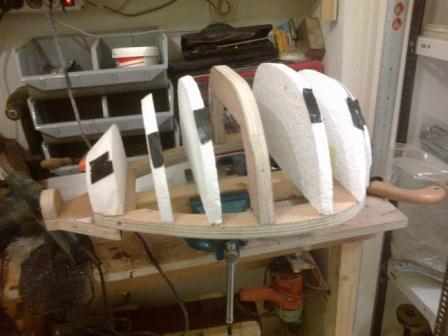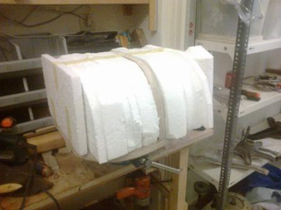 σκεφτηκα λοιπον εναν γρηγορο τροπο για να βρω τα σχεδια απο τους υπολοιπους νομεις. γεμισα το καλουπι με φετες φελιζολ σε παχη 1,8 η 4,8 εναλλαξ που υπαρχουν στο εμποριο, και δημιουργησα αυτο το σαντουιτς