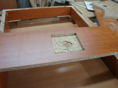 Ύστερα όπως έδειξε η ιστορία...βιάστηκα να κάνω την καμπύλη στο καπάκι,και λέω βιάστηκα γιατί τώρα που θέλω να κόψω το binding channel δεν μπορεί να πατήσει το ρούτερ οπότε είχα 2 επιλογές,αγορά προέκταση κολλετ μιας και το κοπτικό που έχω δεν είναι αρκετά μεγάλο σε μήκος ώστε να μπορώ να χρησιμοποιήσω το κουτί που δείχνω παρακάτω ή να το σκάψω με το χέρι.Διάλεξα το 2ο και θα ακολουθήσουν φώτο απ το αποτέλεσμα.