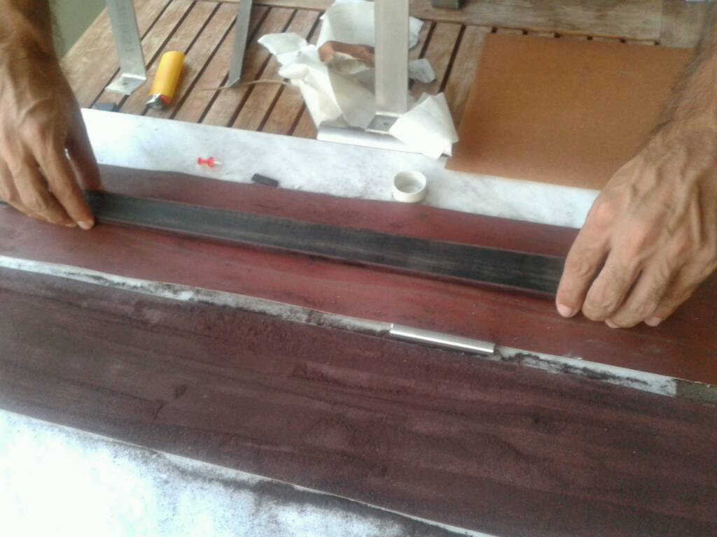 Πηγα να βαλω τον παλισανδρο και στο κατω μερος της ταστιερας αλλα εκει δεν ειναι ισια. Ηθελα και καμπυλη ο ασχετος. Ετσι θα επρεπε να λυγισω στο κανονι που εφτιαξα. Επρεπε να ηταν κανενας απο κοντα .... Θα γελαγε και το παρδαλο κατσικι. Τελικα εγινε μια βλακεια που δεν ταιριαζε ακριβως και βαρεθηκα και το παρατησα. Καλυτερα γιατι μετα ειδα οτι η ταστιερα ηδη κατεβαινει αρκετα κατω μεσα στη τρυπα και αλλα δυο χιλιοστα ισως να μη μου αρεσε. Ετσι και αλλιως δε φαινεται. Δεν υπαρχει αντιθεση...