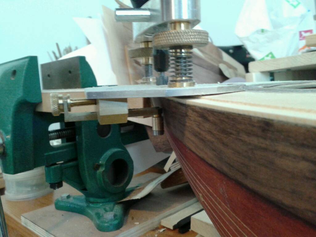 Οπως θα δειτε το εργαλειο δε δουλευει καλα. Ο τροχος δεν ακουμπαει καν στο σκαφος. Εσεις πως το δουλευετε; σκεφτηκα να το γυρισω αναποδα ωστε να ακουμπαει τερμα πανω αλλα βρισκει στο κοπτικο. Πρεπει να βαλω ενδιαμεσα ενα κομματι ξυλο...